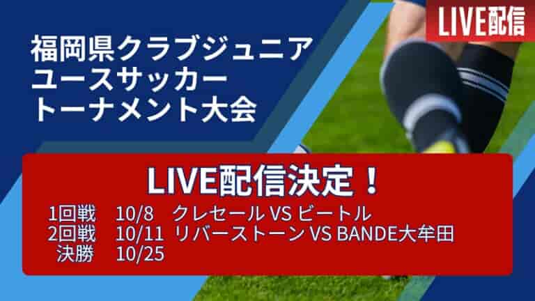 10月4日(土)から10月25日(日)に開催される2025年度 第40回福岡県クラブジュニアユースサッカートーナメント大会の3試合において株式会社グリーンカードがLIVE配信いたします。配信はグリーンカードチャンネルで行います。