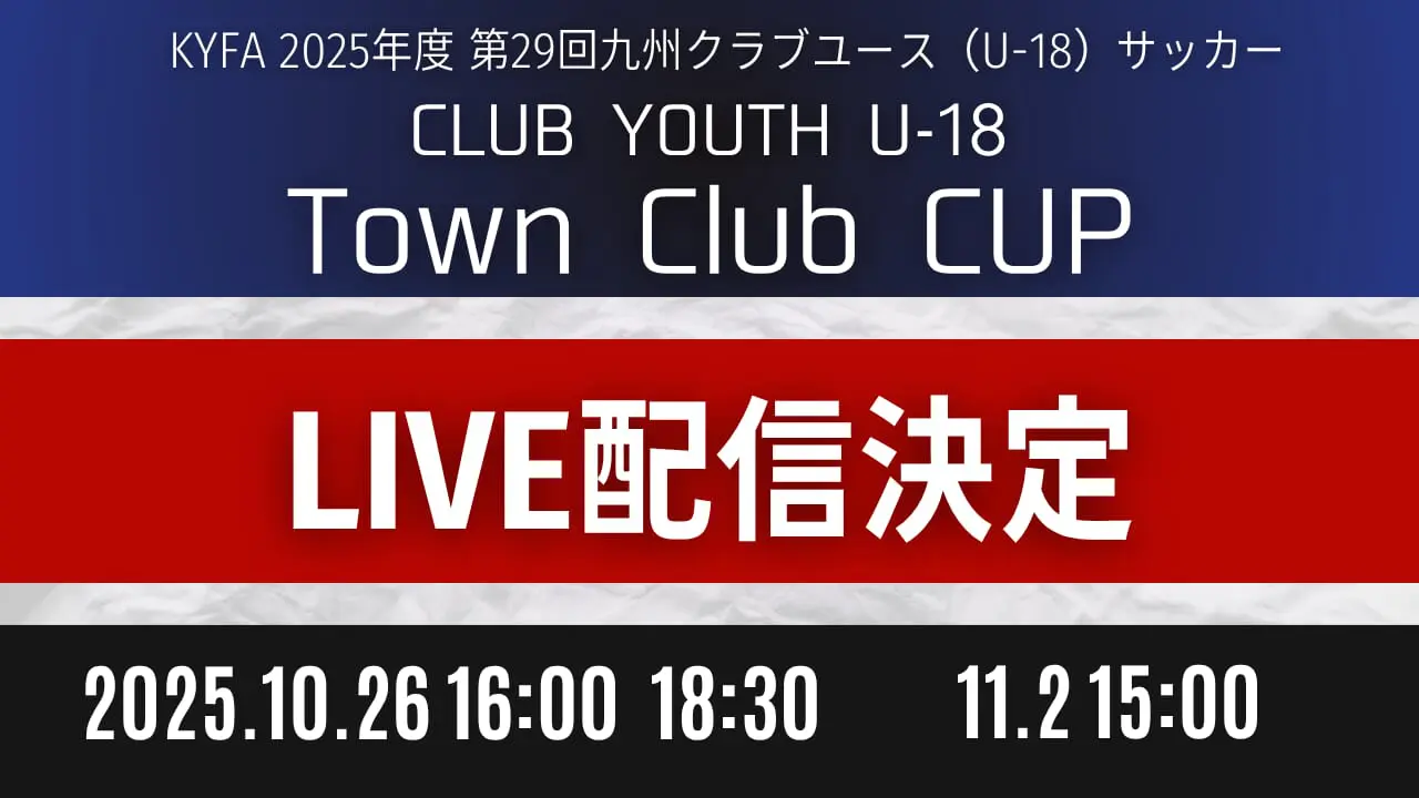 2025年10月26日(日)、11月2日(日)に開催される第29回九州クラブユース(U-18)サッカーTown Club CUPの一部試合において株式会社グリーンカードがLIVE配信いたします。配信はグリーンカードチャンネルで行います。