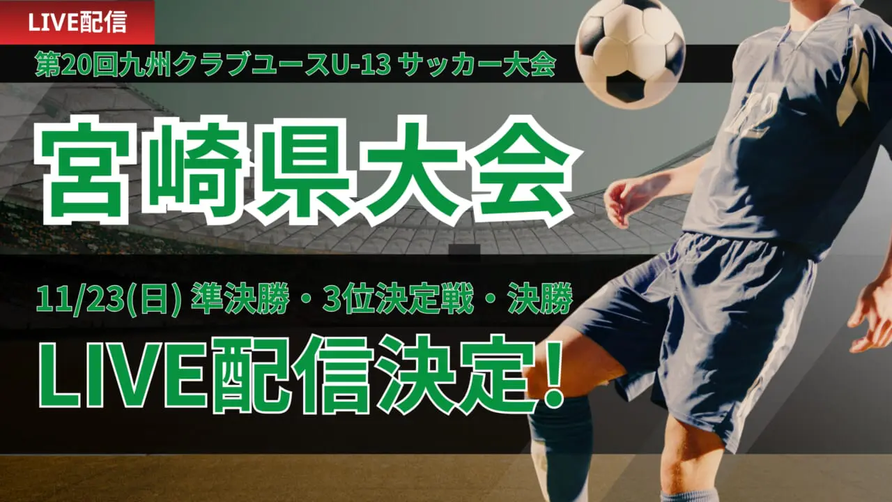 2025年11月23日(日)に行われる第20回九州クラブユース(U-13)サッカー大会宮崎県大会の準決勝、決勝、3位決定戦において株式会社グリーンカードがLIVE配信いたします。配信はグリーンカードチャンネルで行います。