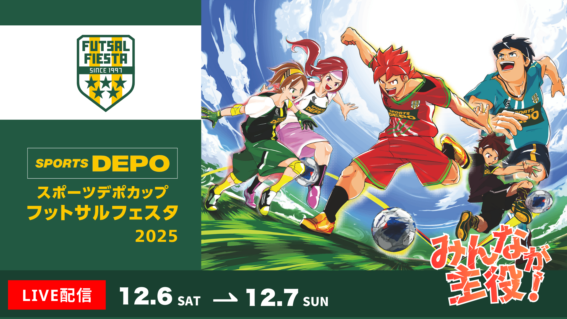 2025年12月6日(土)、7日(日)に開催されるスポーツデポカップ フットサルフェスタ2025全国大会の全カテゴリーの全試合において株式会社グリーンカードがLIVE配信いたします。配信はグリーンカードチャンネルで行います。