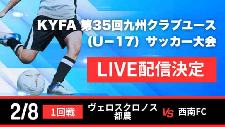 2026年2月8日(日)に開催されるKYFA 第35回九州クラブユース(U-17)サッカー大会の1試合において株式会社グリーンカードがLIVE配信いたします。配信はグリーンカードチャンネルで行います。