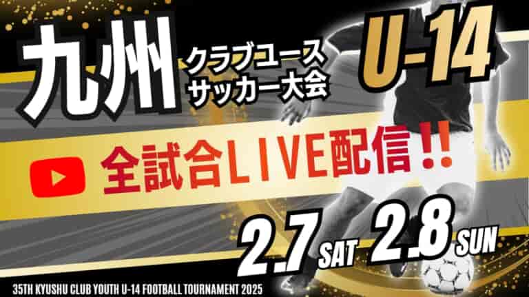 2026年2月7日(土)、8日(日)に開催されるKYFA 2025年度 第35回九州クラブユース(U-14)サッカー大会の全試合を株式会社グリーンカードがLIVE配信いたします。配信はグリーンカードチャンネルで行います。
