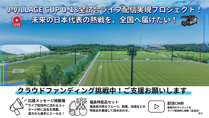 本日18時より、J-VILLAGE CUP U-18の全試合ライブ配信プロジェクトとしてクラウドファンディングを開始いたします。